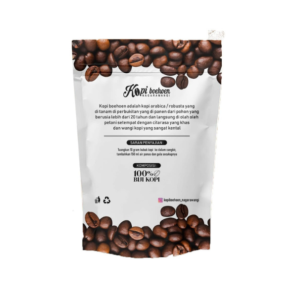 Boehoen coffee is arabica and robusta coffee that is grown on the hills of Mount Manglayang from trees that are more than 20 years old and directly processed by local farmers with a distinctive taste and a very thick coffee fragrance.