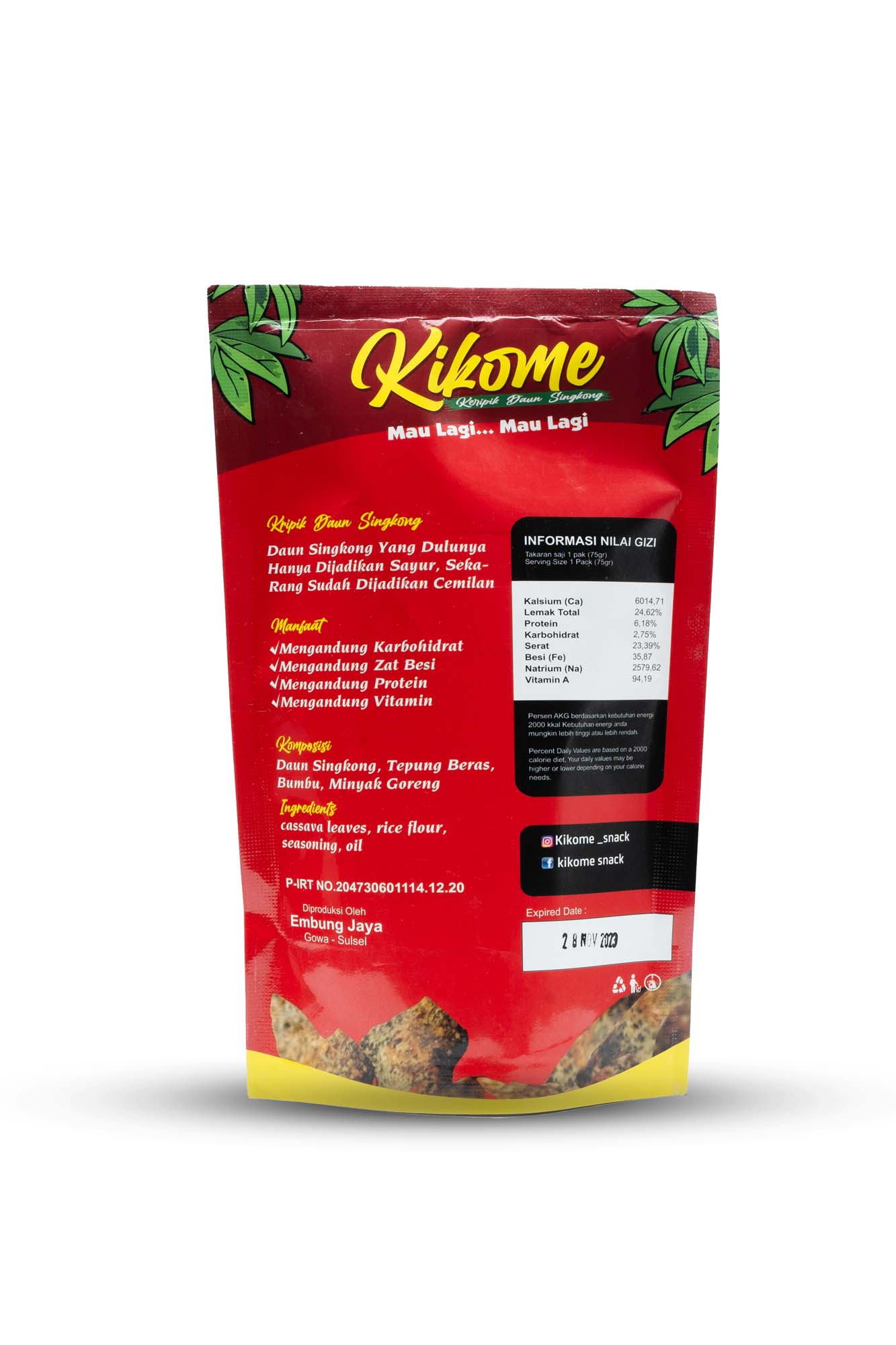 Daun Singkong yang dulunya hanya dijadikan sayur, sekarang sudah dijadikan cemilan yang sehat bernama Kikome.
