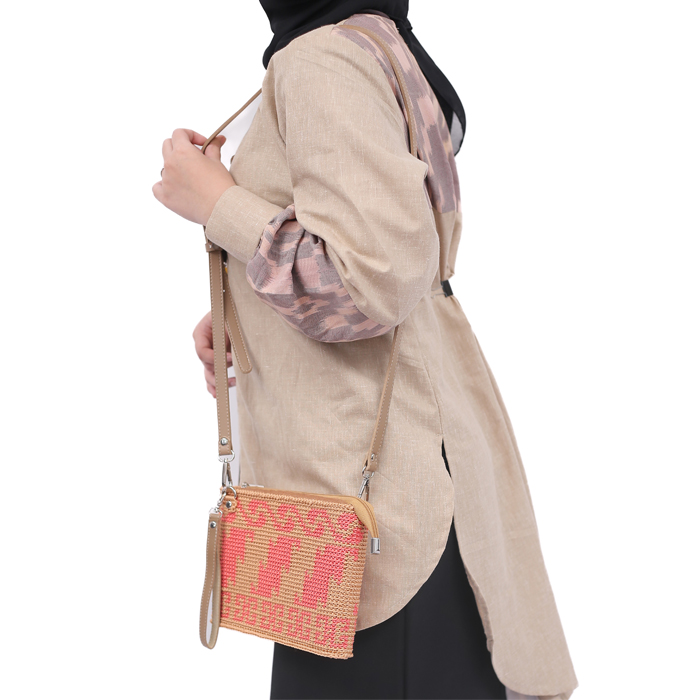 Pouch / Slingbag Tidayu is a knitting bag that carries three symbols of ethnic harmony in West Kalimantan. The top motif is the dayak motif "suai bekait" symbolizing the brotherhood of "menyadik" in the dayak tribe, while the Malay motif "gill pattern" is a symbol of the calm waves of the Kapuas River, which is the breath of the economy of the pontianak community since ancient times, and the tionghua motif "banji (swastika) motif" which is depicted horizontally means eternity or continuity, can be found above the pagoda vent of the Cheng Ho Purbalingga mosque.