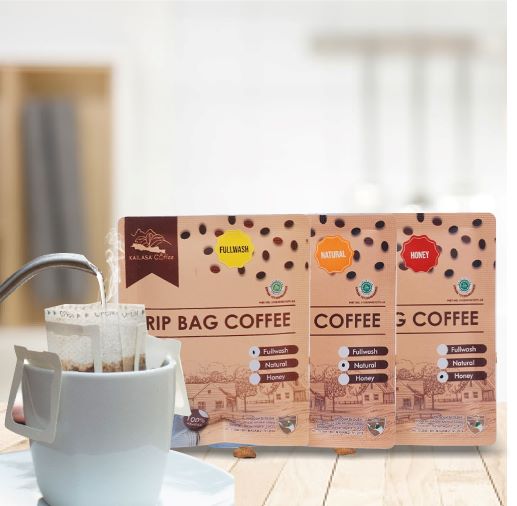 Kailasa coffee is coffee with geographical indications Arabica Coffee Dieng Mountain, Banjarnegara. Planted at an altitude of 1,200 Mdpl with a majority of varieties Lini S 795. Planting sites are located on the mountainside of the Bismo Hill, which includes the highland area of the Dieng. Processed with a variety of proper coffee beans processing, It has a distinctive scent, with a good taste, as well as variants in the processing process will create a typical Nusantara coffee. Raw materials cherry red coffee, selected premium bean, specialty coffee, fresh roast, standart profile roasting light to medium, medium to fine standart grinding, 100 % Arabica coffee, pure and natural, guaranteed, PIRT and Halal Certified, listed on DJKI.