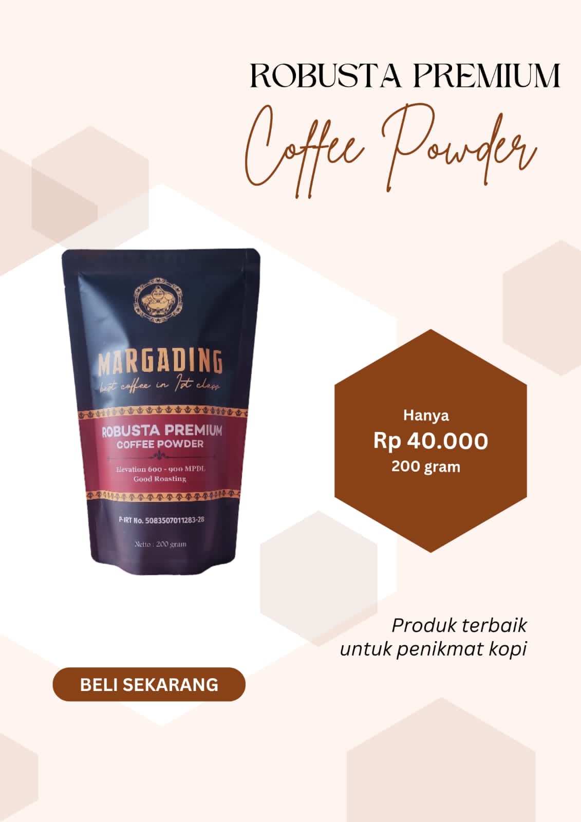 Margading Coffee production began in 2012 at the same time as the mass traditional roasting activity recorded in the Muri Record which was organized by the East Java Agricultural Service in Wonosari Village, Malang Regency. Margading Coffee is a coffee originating from Tirtoyudo District which is characterized by Semeru Lereng Coffee with Premium Robusta, Lanang Robusta and Premium Arabica variants which are currently Best Seller. For Coffee Lovers and Coffee Connoisseurs, don't run out because Margading Coffee is true Javanese Coffee.