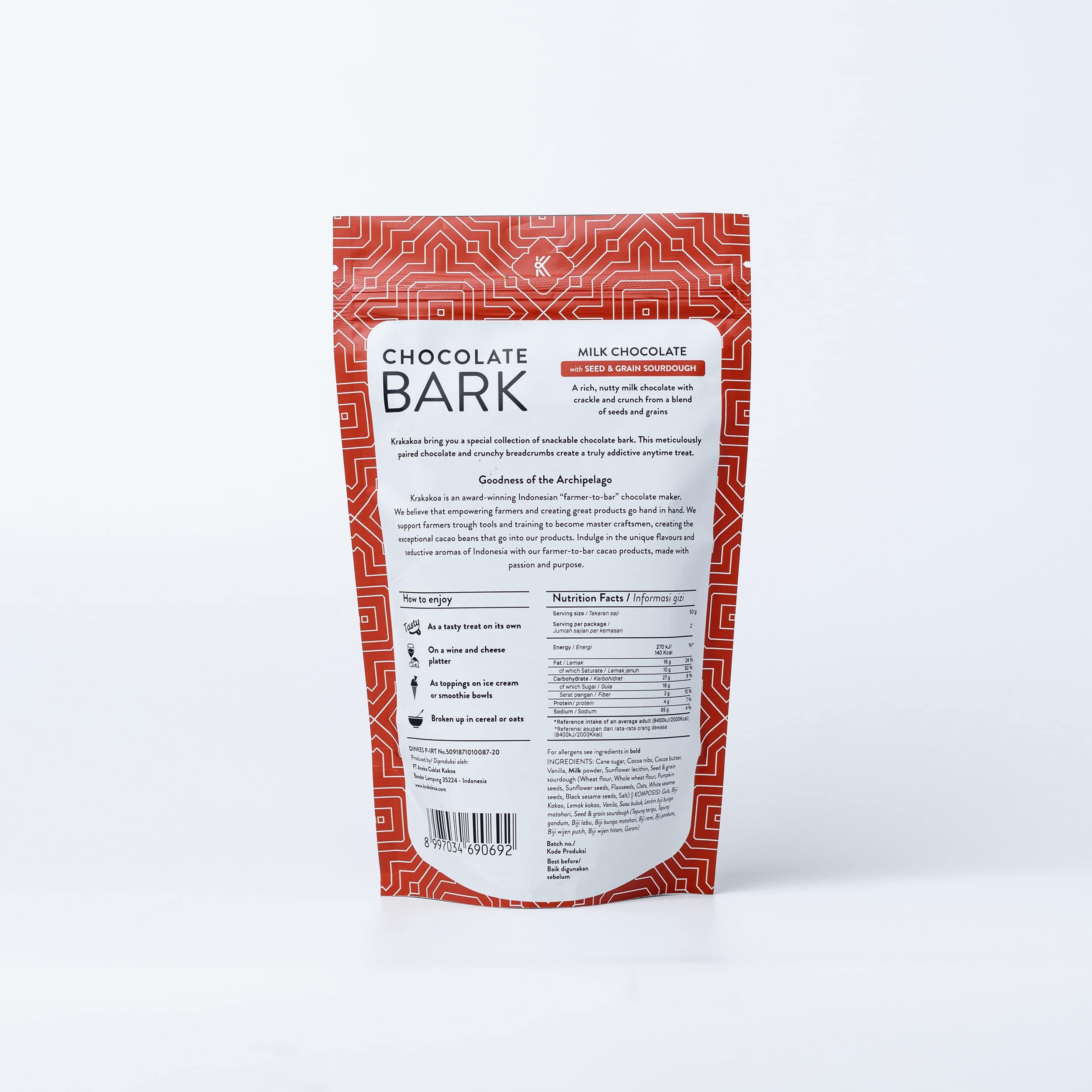 Founded in 2013 as Kakoa, our brand evolved in October 2016 when it became Krakakoa. Our cacoa beans are organically-grown and sourced from small farms that practice sustainable farming methods, and our partner farmers are paid more than the Fair Trade Minimum price for their harvest. Indulge in the unique flavours and seductive aromas of Indonesia with our organically grown, farmer chocolate products, made with passion and purpose.