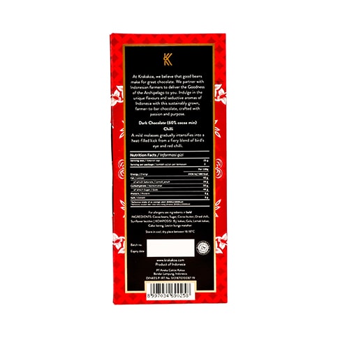 Material Content: Cocoa beans, Sugar, Cocoa butter, Dried chilli, Sunflower lecithin