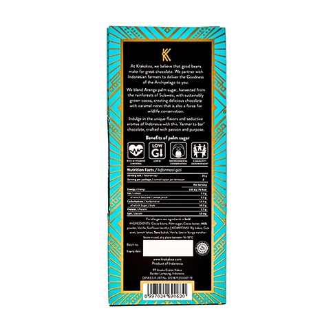 Material Content: Cocoa beans, Palm sugar, Cocoa butter, Milk powder, Sunflower lecithin.