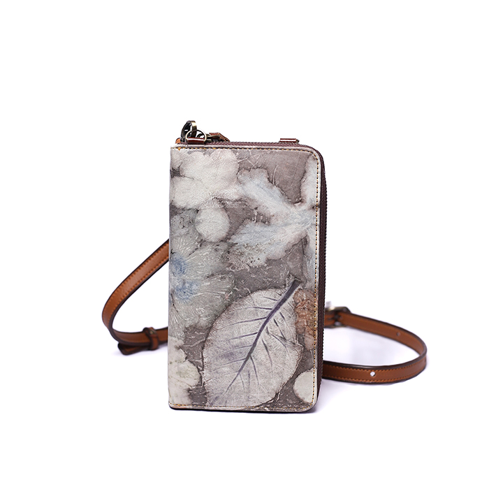 This wallet is very multi-functional in addition to storing money can also be used as a cellphone bag. By using cowhide leather with ecoprint technique, this small bag is suitable for daily use.