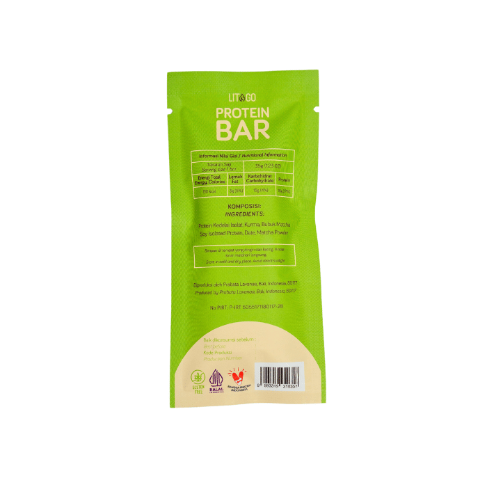 Material Content: Soy isolated protein, dates, cashew, matcha powder