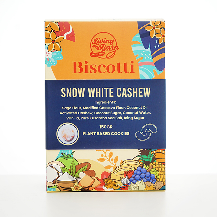 Vegetable cookies, a natural gluten-free healthy snack option that can be consumed by all ages. Made from the best local vegetable sources native to Indonesia, such as high-quality sago flour and cassava flour, thus helping to revive the economy of dedicated farmers and artisans. The natural sweetness of coconut sugar in minimal quantities makes this product safe for consumption for those of you who limit sugar intake. Snow White Cashew Biscotti is enriched with various benefits of cashew nuts, including protein and calcium, unsaturated fats which are needed for the growth of new cells, improving blood fat profiles, supporting skin and joint health, and optimizing the health of the immune system. 1% of the sales value of this product is donated to support public education about autoimmune diseases and the importance of adopting a healthy lifestyle.