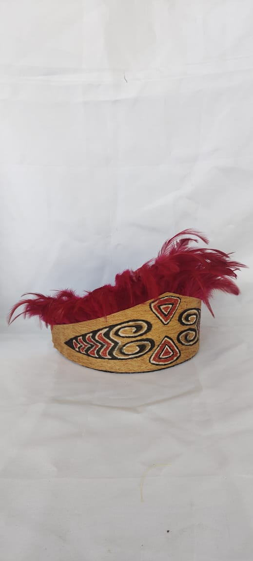 Mahkota Ukiran motif Papua bulu ayam polos