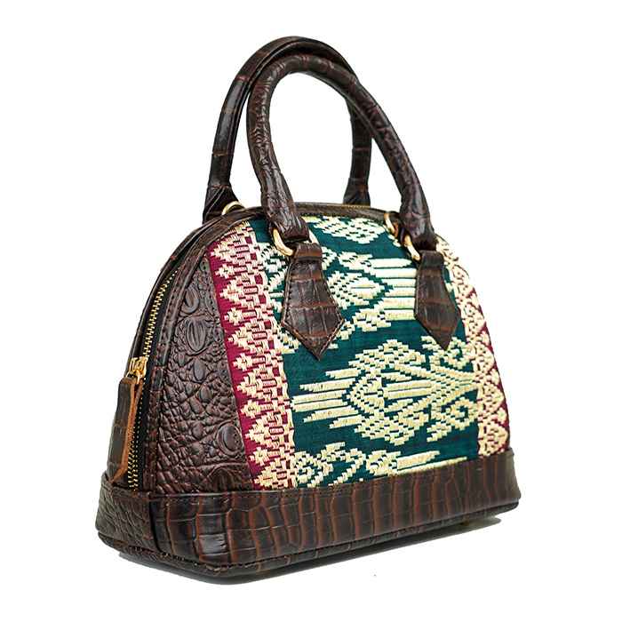 Handbag Alma Songket Rebong Green about luxury. Combination of green gradations and banyumas threads adds to the exclusive impression of the wearer.