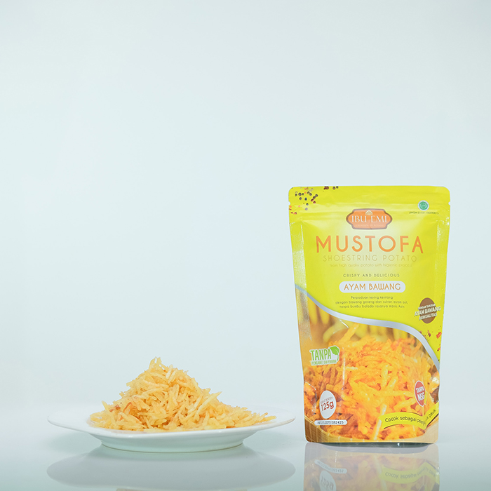 Mustofa adalah sebutan popular untuk makanan kering kentang. Terbuat dari kentang pilihan dan bumbu rempah alami sehingga menjadikan mustofa ibu emi satu satunya Kering Kentang yang renyah dan tahan lama.