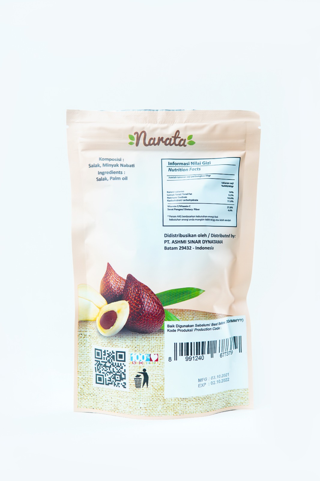 A superior product that prioritizes quality salacca raw materials, prioritizes taste and "Food Healthy" by using 100% selected fruit without using chemicals, preservatives or artificial sweeteners. It is suitable to accompany daily activities
