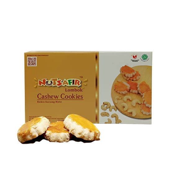 Made from selected cashew seeds from East Lombok, North Lombok, and Sumbawa which are processed hygienically, without preservatives, without artificial sweeteners, and without coloring. Cashew seeds have nutritional content including; high enough calories, and contain carbohydrates, protein, fat, and fiber. Cashew nuts also contain vitamin K, vitamin E, folate, and B vitamins, calcium, sodium, potassium, magnesium, phosphorus, zinc, and iron. Enjoy the crunchy sensation of cashews until the last bite. Price: Rp. 30.000,- Netto: 110 Ingredients : Wheat Flour, Palm Oil, Sugar, Cashew, Skim Milk Powder, Edam Cheese, Margarine, Baking Powder, Salt, Vanilla.