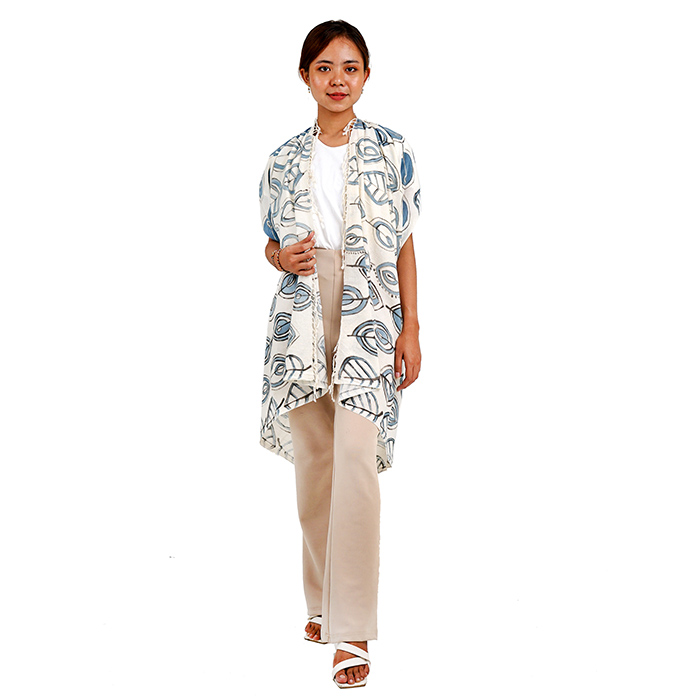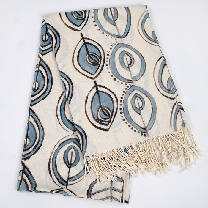 Pattern Meaning: This painted scarf is made with a painting technique using natural colour inks that come from indigo strobilanthes cusia leaves. This motif is inspired by the shape of ketapang leaves which are one of the sources of colours used in natural dyes