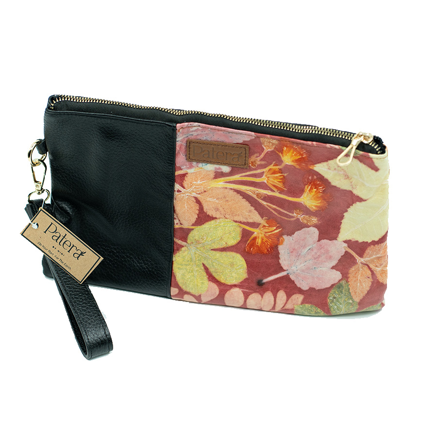 Pouch dengan bahan Ecoprint Kulit Domba dan inner Suede