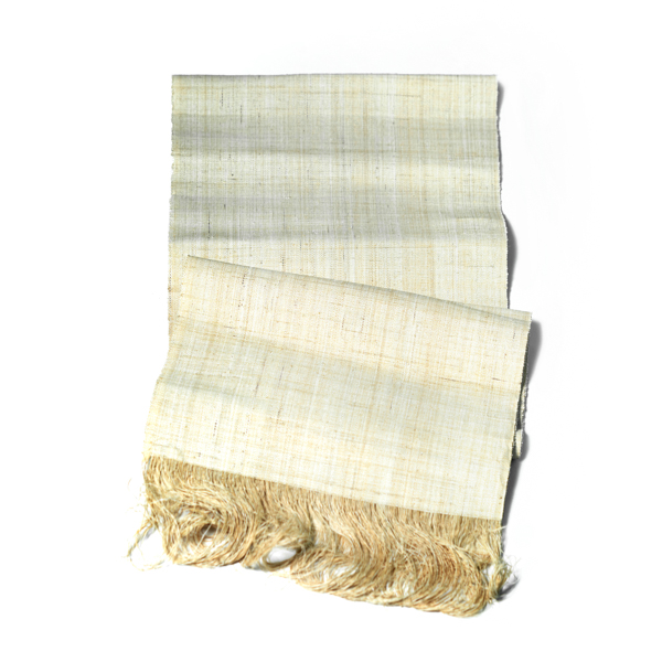 dokan atau alat tenun. Melalui proses pengikatan dan tanpa pewarnaan Tenun doyo putih ini merupakan bahan setengah jadi yang dapat digunakan untuk hiasan dinding , homedecor , taplak meja dan bahan untuk membuat tas.