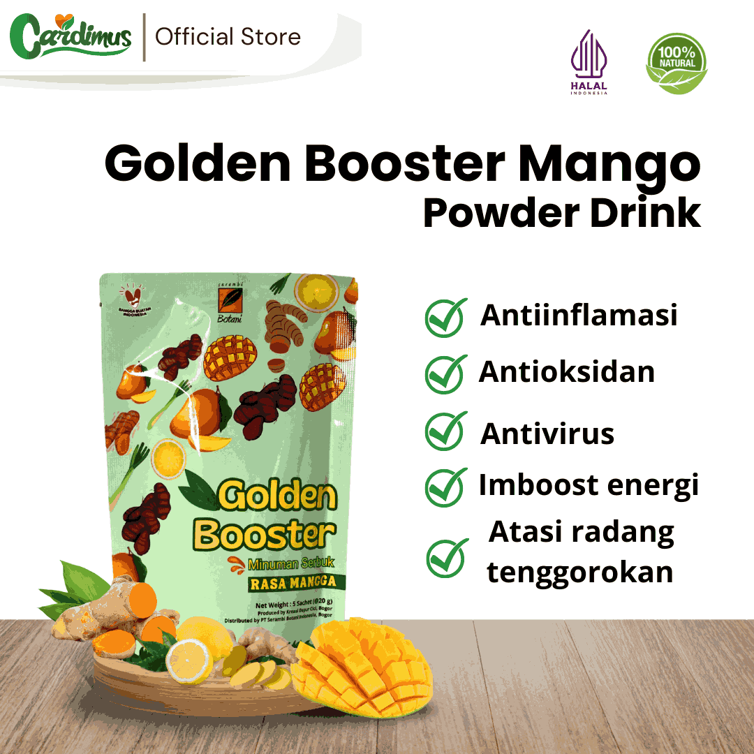 Golden Booster Mango is an instant powder drink derived from a blend of nutritious herbs such as turmeric extract, red ginger extract, ginger extract, lemon extract with a refreshing mango flavor.