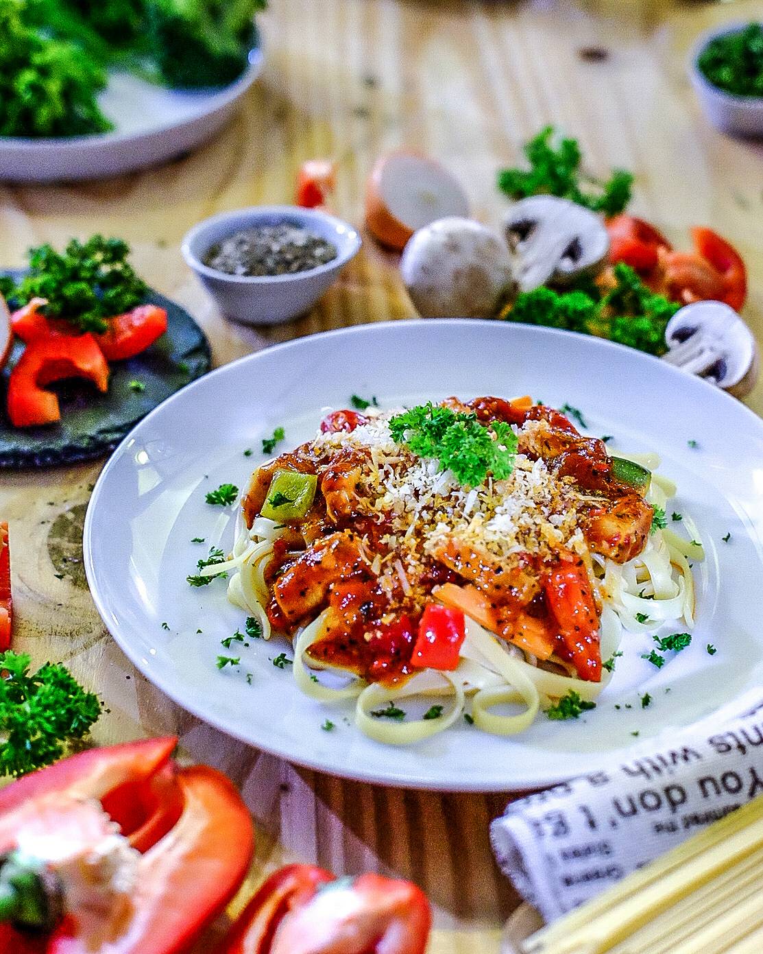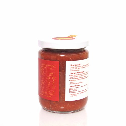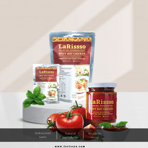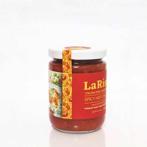 LaRissso Pasta Sauce Spicy Hot Chicken variant is an extra spicy pasta sauce made from natural ingredients, namely fresh tomatoes harvested directly from the farmers, added with minced chicken breast, cooked using canola oil and selected spices, and also a combination Italian herbs and local spices create a unique pasta sauce, slightly sour, fresh, savory and also spicy. In addition to pasta, this sauce is also suitable for spreading bread, pizza, dipping french fries, nachos, and even as a seasoning for fried rice.