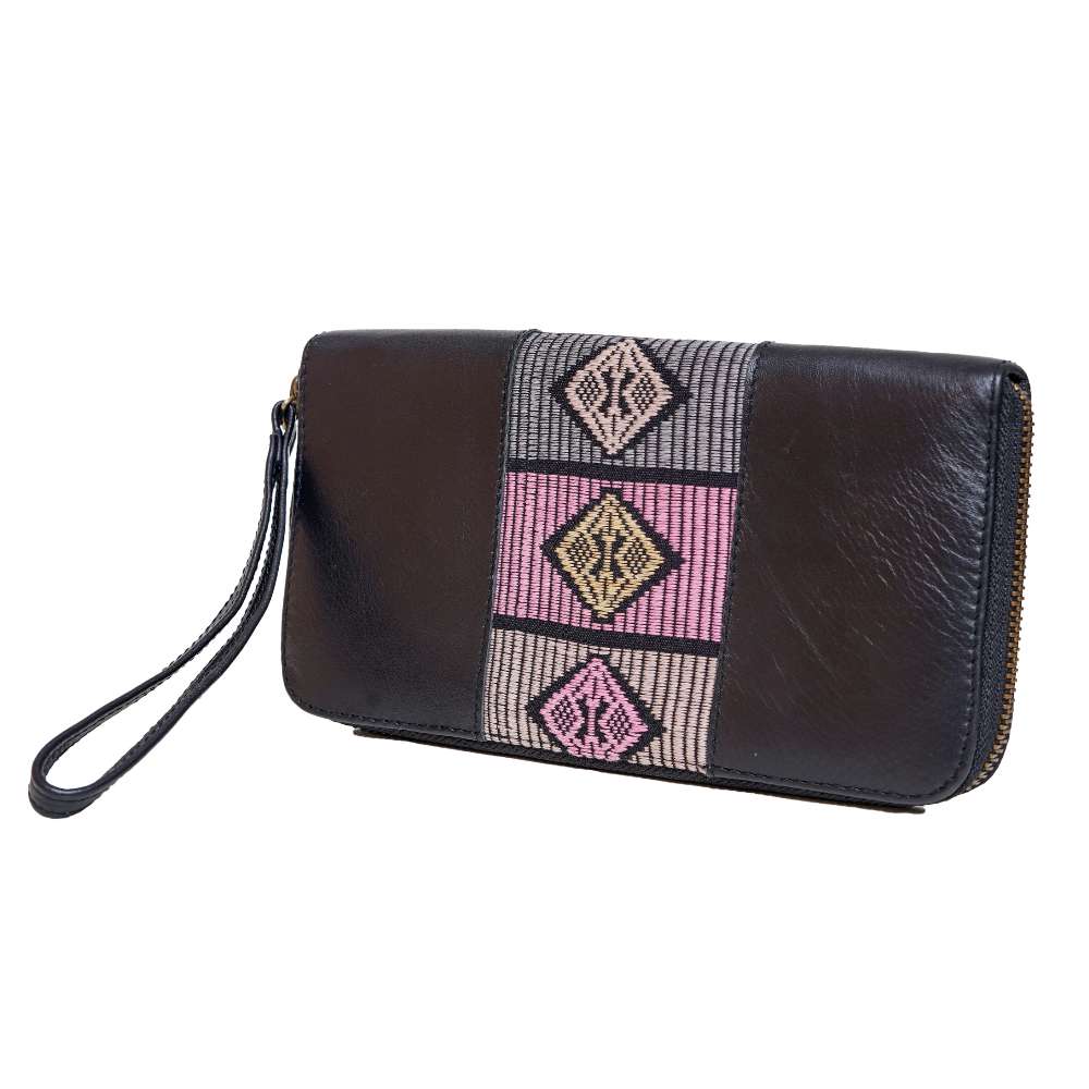 Dompet Songket kombinasi yang menggunakan sedikit bahan kulit dan songket yang di buat secara handmade, dompet ini bisa digunakan untuk acara formal dan non-formal.