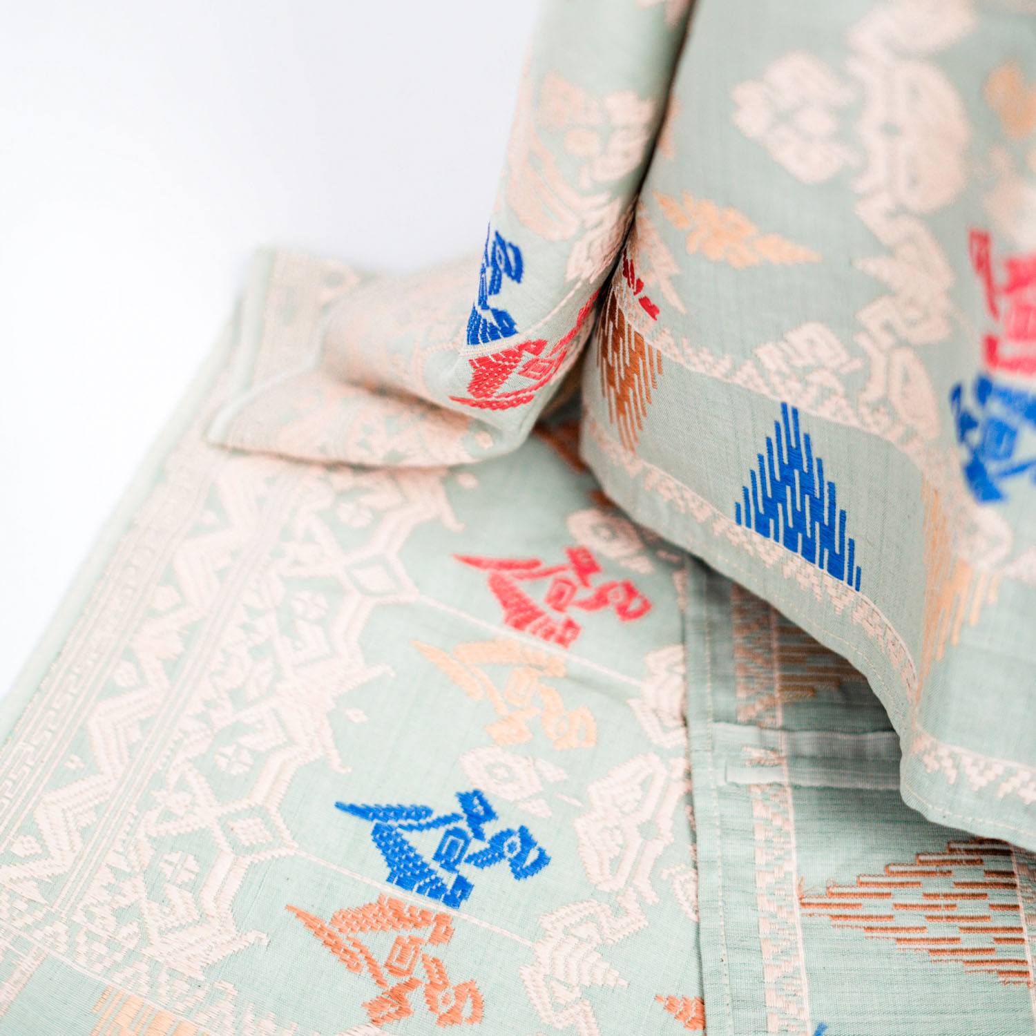 Pattern Meaning: Motif itik, yang terinspirasi oleh keanggunan dan kehidupan itik, melambangkan harmoni, kesuburan, dan kebahagiaan. Dalam budaya Bali, itik memiliki arti khusus yang mencerminkan berbagai aspek kehidupan sehari-hari dan nilai-nilai spiritual. Dengan motif itik, songket Bali tidak hanya menampilkan keindahan estetika, tetapi juga mengandung makna mendalam tentang harmoni, kesuburan, kerja keras, kebahagiaan, keberanian, dan keterkaitan dengan alam. Setiap helai kain songket dengan motif itik membawa cerita dan nilai-nilai yang kaya, memberikan warisan budaya yang berharga bagi setiap pemakainya.