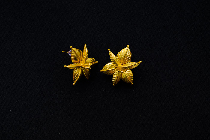 THIS CATLEYA ORCHID BROOCH HAS A SET OF EARRINGS MADE FROM DARK COPPER, GOLD PLATED BRASS, INSPIRED BY THE SHAPE OF ONE OF THE ORCHID FLOWERS, THE CATLEYA ORCHID FLOWER.