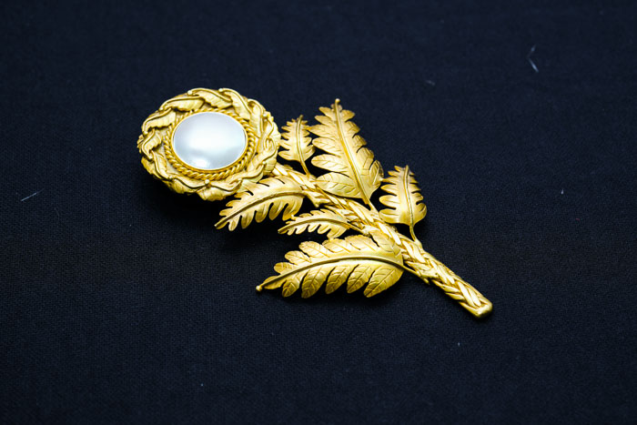 THIS BROOCH WAS INSPIRED FROM THE SHAPE OF THE STEEL COMBINED WITH ARCU (SHELLHEAT). THIS BROOCH IS SUITABLE TO WEAR IN OFFICE CLOTHING