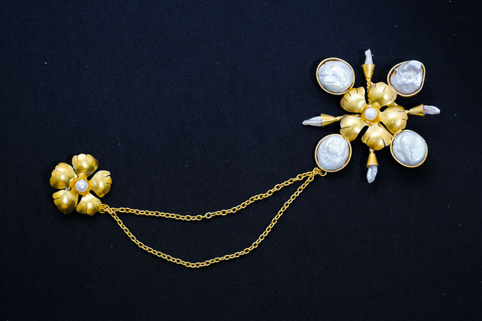 KESHI PEARL FRAME WITH GOLD PLATED BRASS COPPER IN SONGKET SHAPED