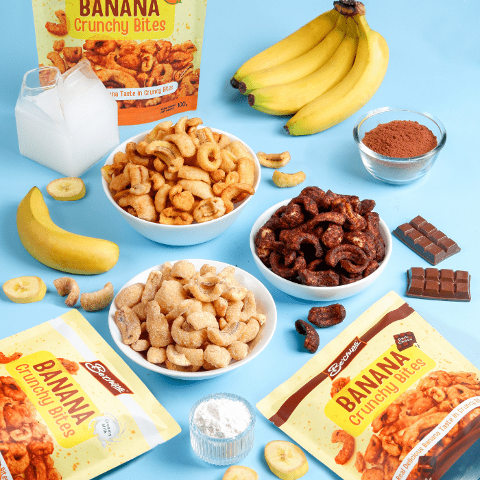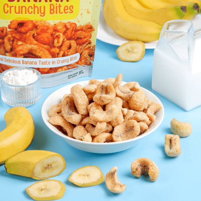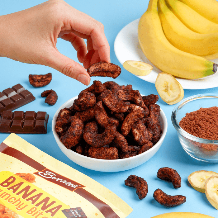 BANANA CRUNCHY BITES, is a healthy product line from Be'Chips which is produced with 2 main raw materials, namely banana and coconut oil.
