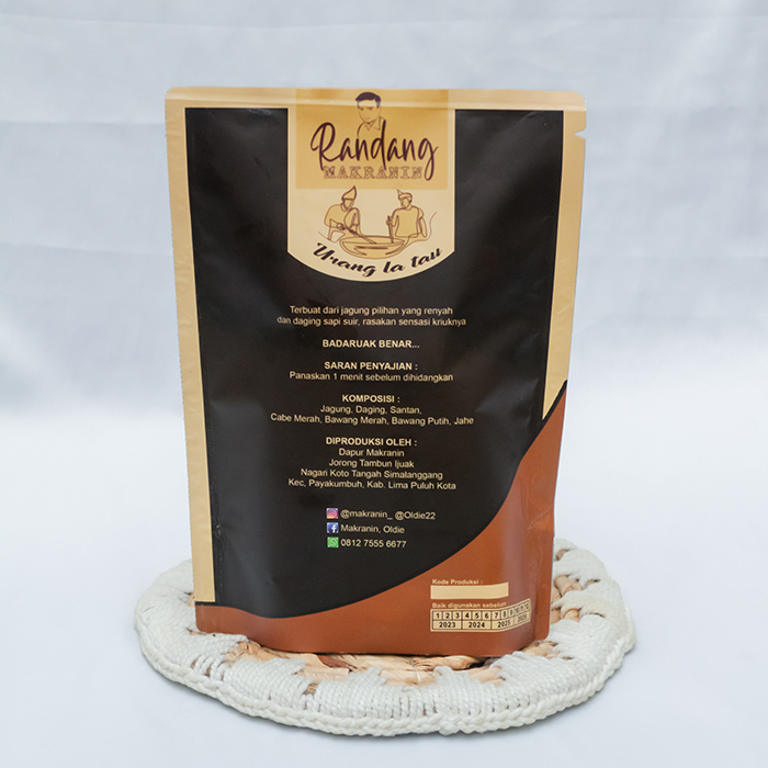 Randang Jaguang Makrnanin is a new variant of Minangkabau cuisine's rendang. Randang Jaguang Makranin stems from our strong desire to preserve the tradition of ancestral food. Additionally, we hope to prevent foreign cuisines from eroding the tastes of our children. With the growing popularity of rendang worldwide, we had the idea to create a new variant using corn. Initially, we conducted a simple 3-month research period. We sought the knowledge of village cooks within our family circle regarding the process of making rendang. After experimenting with various recipes, we finally discovered the perfect blend to make randang jaguang. We shared randang jaguang with our closest relatives as testers, and it turned out that many people, including children, loved it. With confidence and entrepreneurial spirit, we began selling it openly.