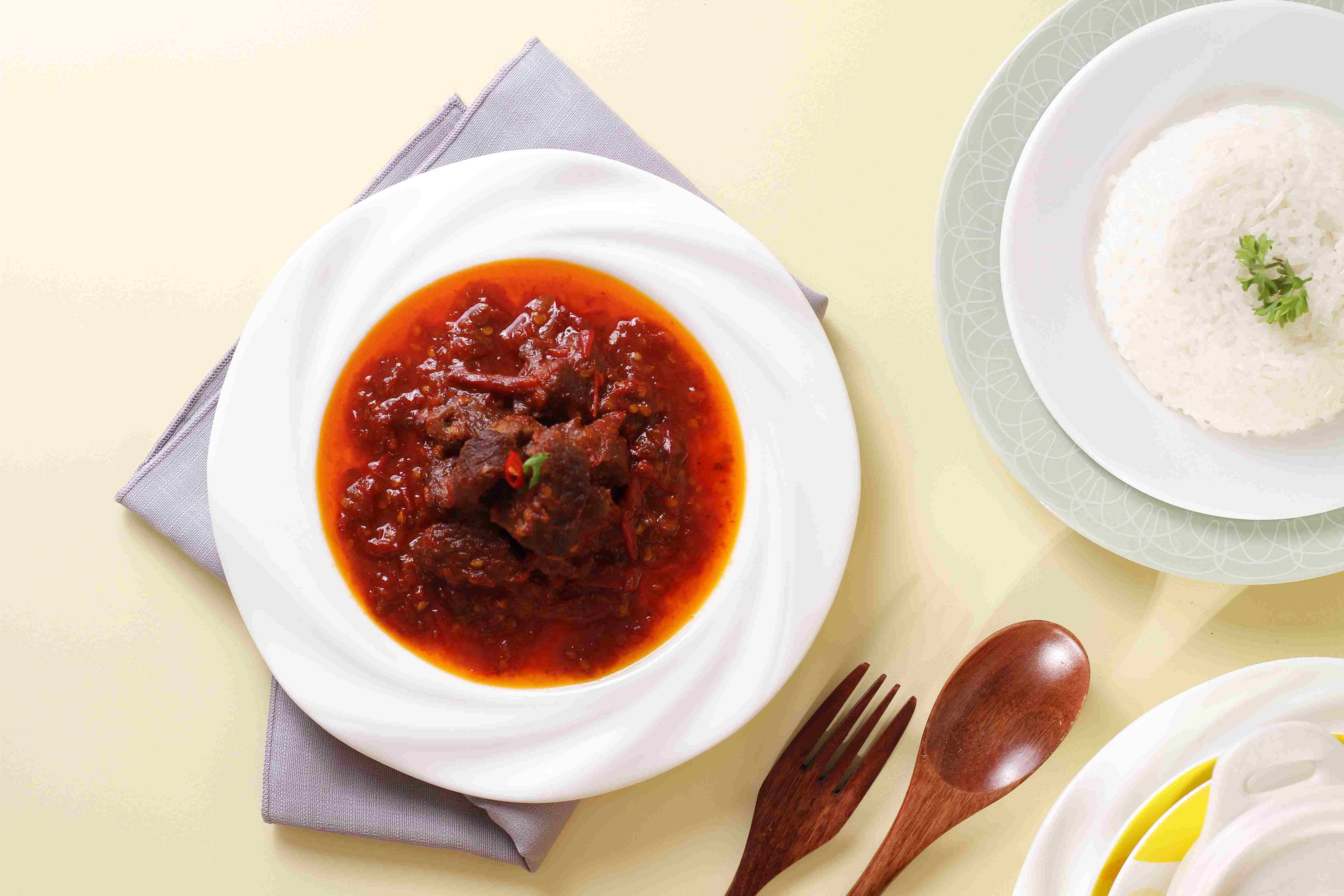 Material Content: Daging Sapi 77,28%, Cabe Merah, Minyak Sawit, Bawang Merah, Bawang Putih, Garam (Beef 77.28%, Red Chili, Palm Oil, Onion, Garlic, Salt)