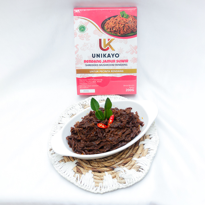 Rendang Jamur Suir is the latest innovation from Unikayo, made from fresh oyster mushrooms supplied by the Payolinyam Women Farmers Group, and processed with Unikayo's special spices, resulting in an authentic flavor with a soft and chewy texture.