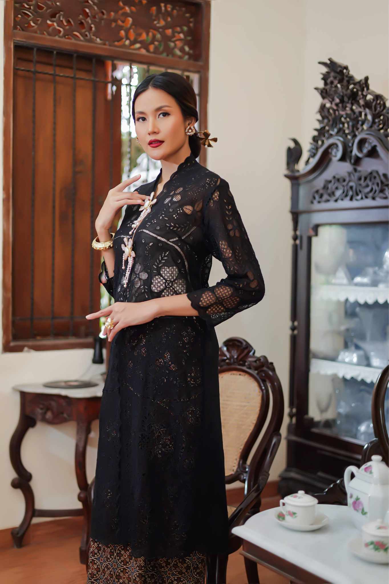 Kebaya Panjang Kembang Sepatu Kerancang Hitam