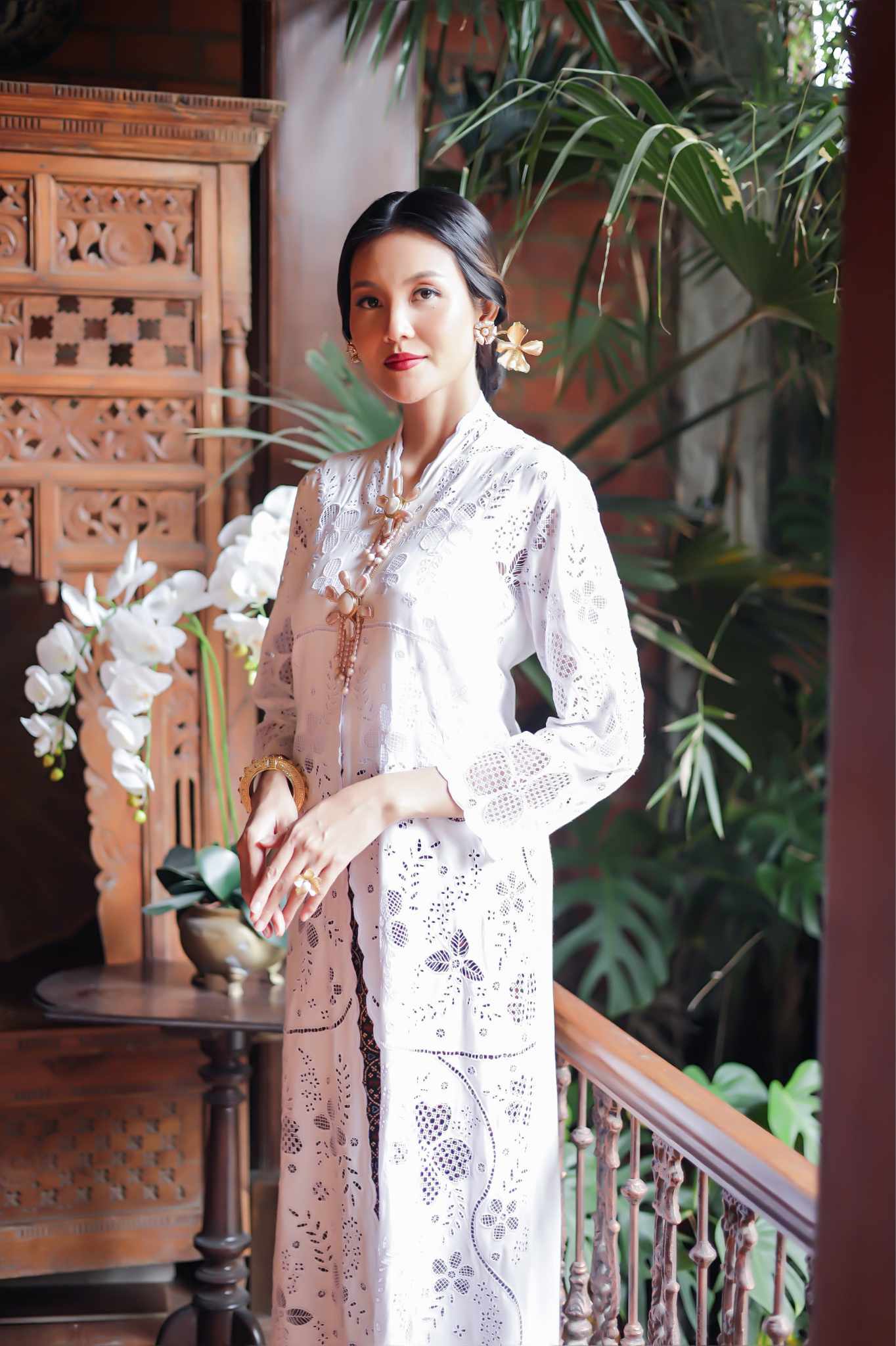 Kebaya Panjang Kembang Sepatu Putih
