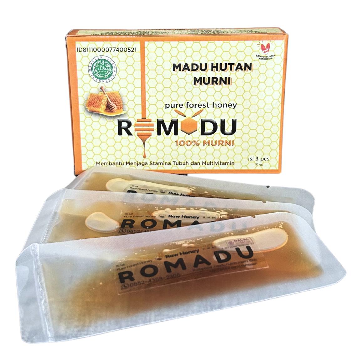 Taken from the forest of Roma Island, Southwest Maluku Regency, Maluku Province, ROMADU, 100% pure forest honey without preservatives. This honey is taken from the steep cliffs in the forest. Farmers is struggle to take it in tradisional ways but it is a source of livehood for the generations. And it is the main source of livelihood for the lokal people. However, the seling value of Thio honey is still very low. Therefore, we make a premmium psckaging from glass to raise up the seling value. And to reach a wider market, Romadu is packaged in an economical package, namely a 3-pack of sachets.