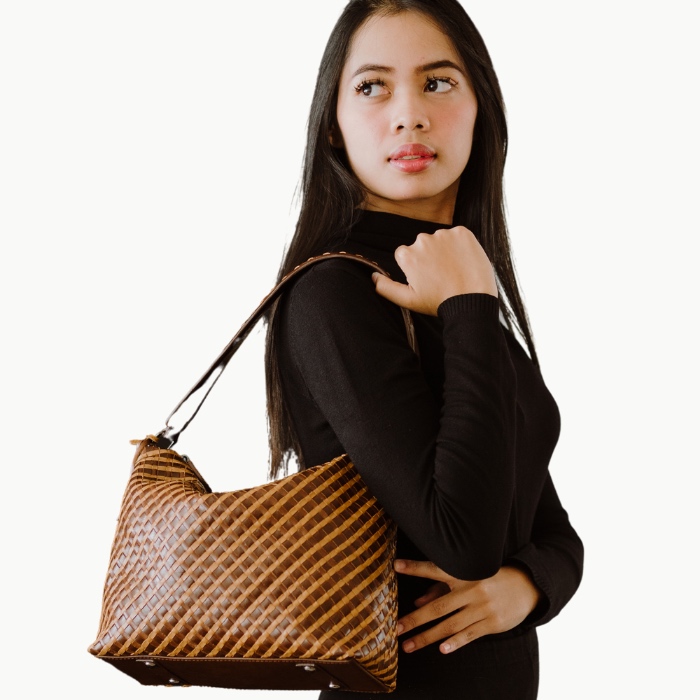 Keong Ayu is made from genuine woven cowhide leather, with a woven vine motif, included in the tote bag type. Complete with an outer zipper, 2 inner pockets and 1 inner pocket with zipper.