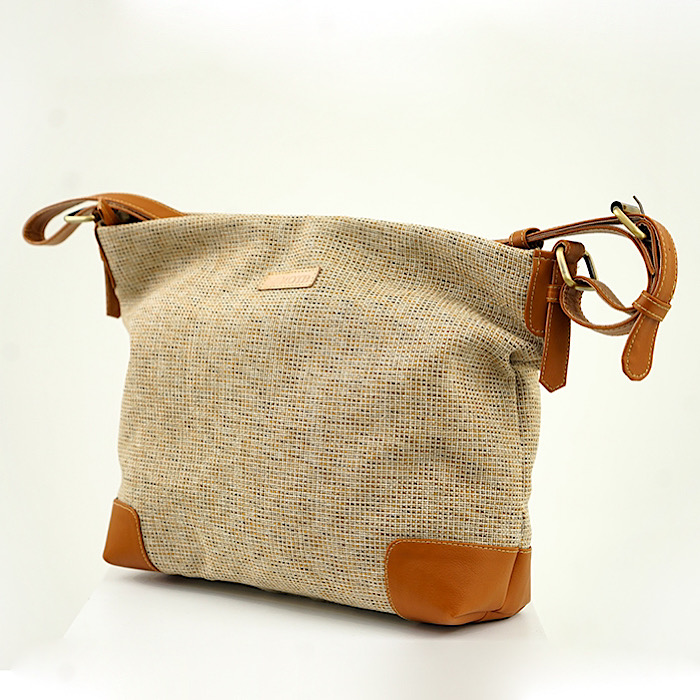 The combination of natural botanical and vegetable fibers, with a touch of woven Indonesian, is designed with the gonee tote bag model.