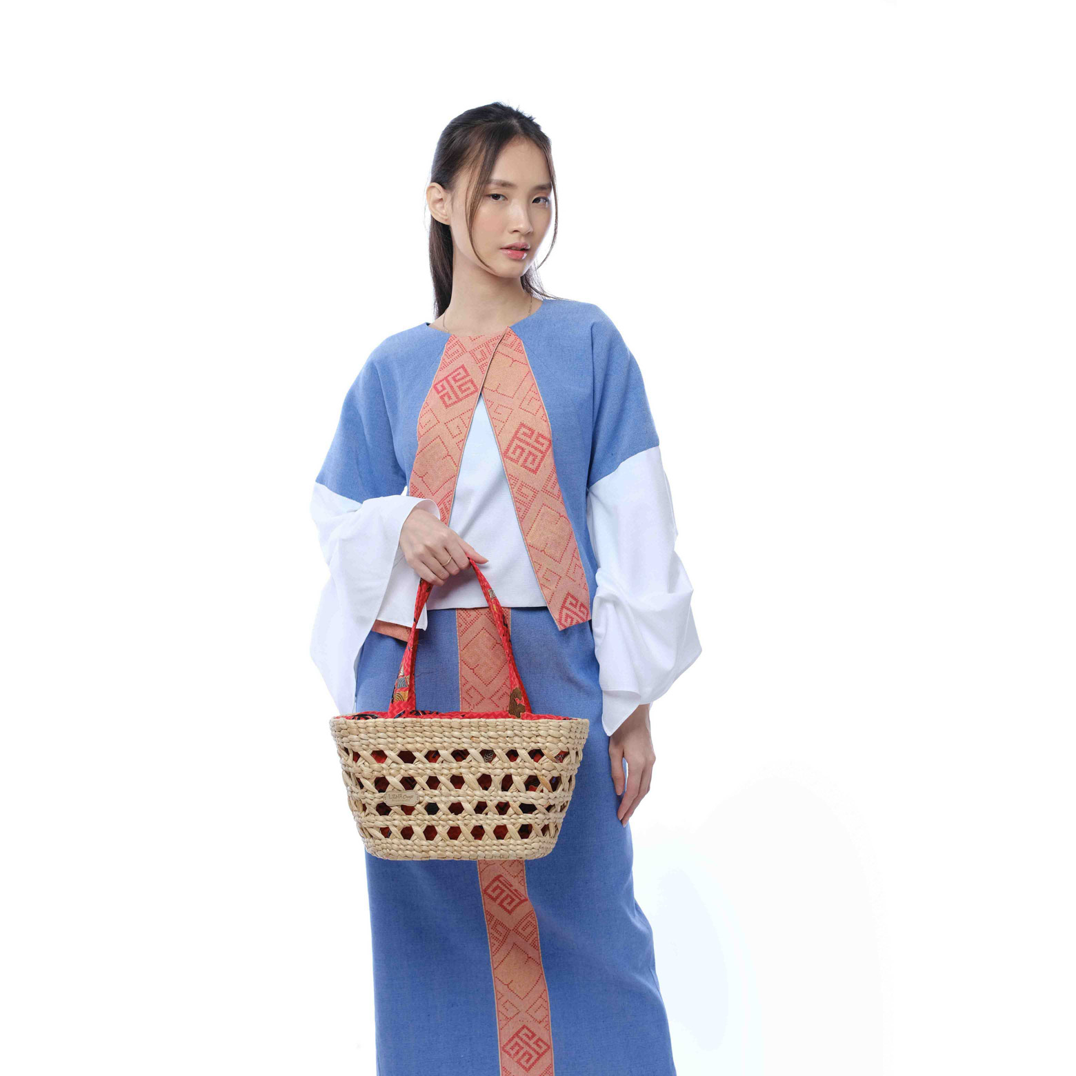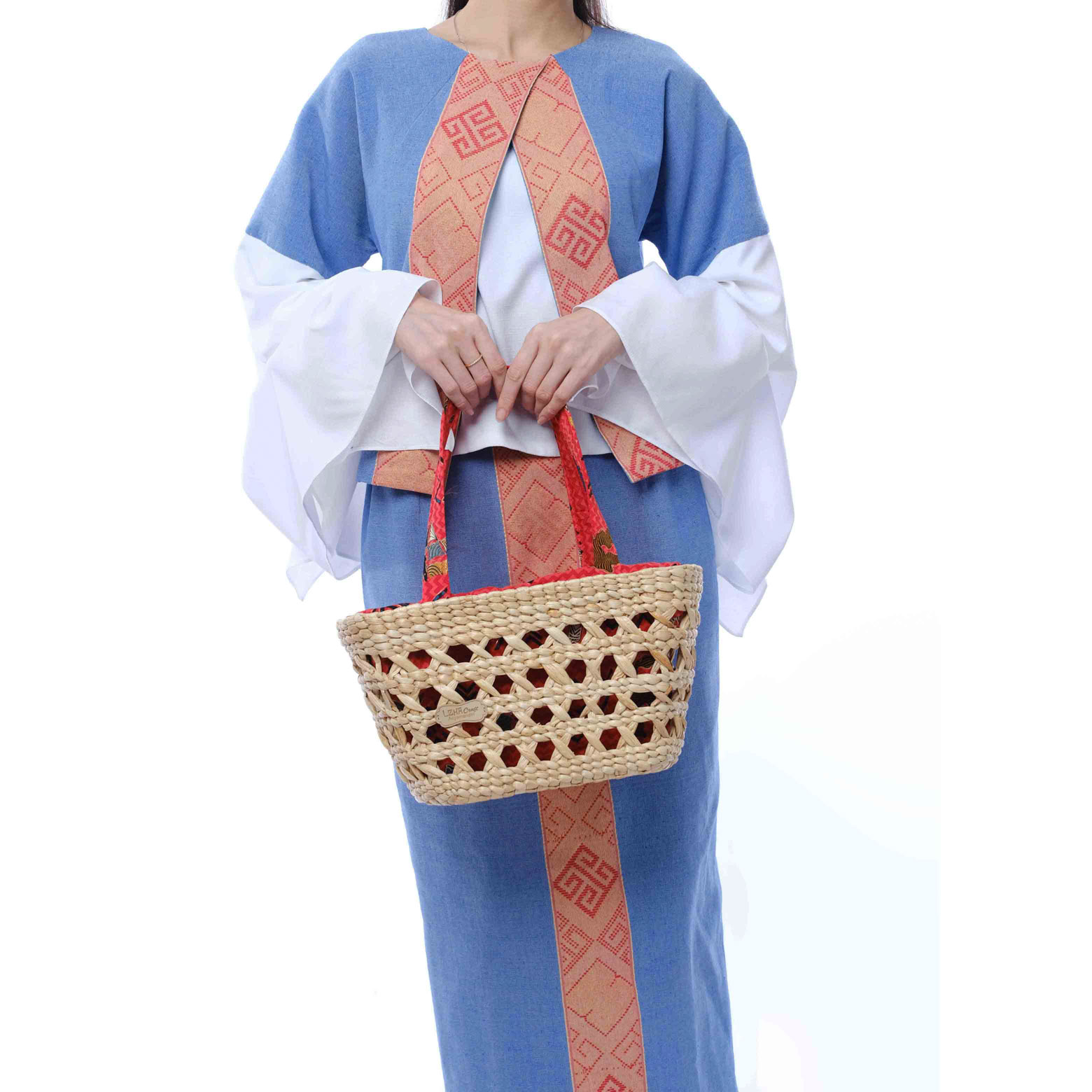 The lebonna karawang bag with a silk motif is made from woven water hyacinth, an environmentally friendly product. With furing fabric from lontara patterned silk, suitable for use when relaxing and traveling