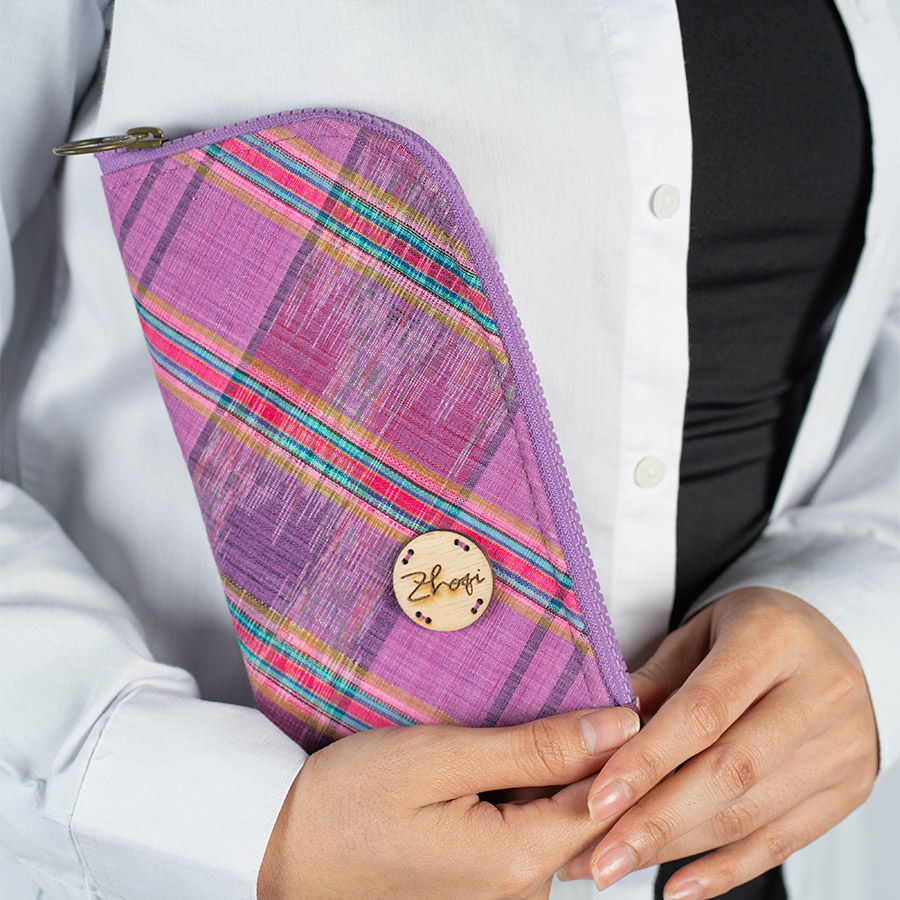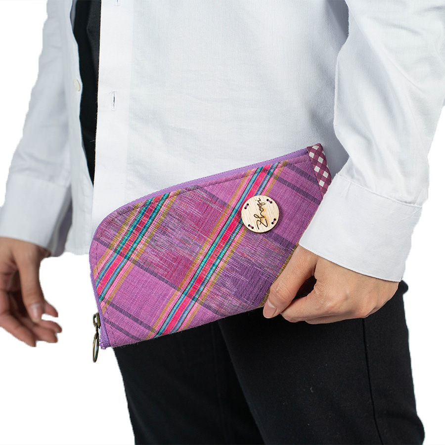 Pouch handphone ini terbuat dari kain tenun tajung, bagian dalam terdapat 2 slot untuk kartu maupun uang