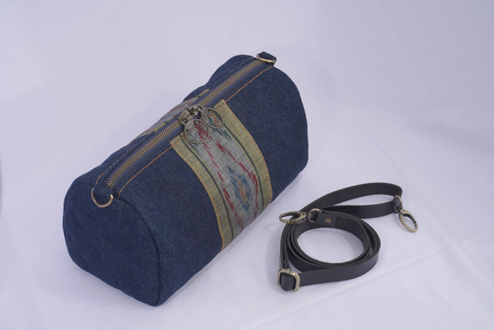 This sling bag is medium sized, the right and left sides are oval, with a full body made from navy blue jeans. Application in the middle of the bag with woven ATBM Sarong Tajung Palembang fabric.