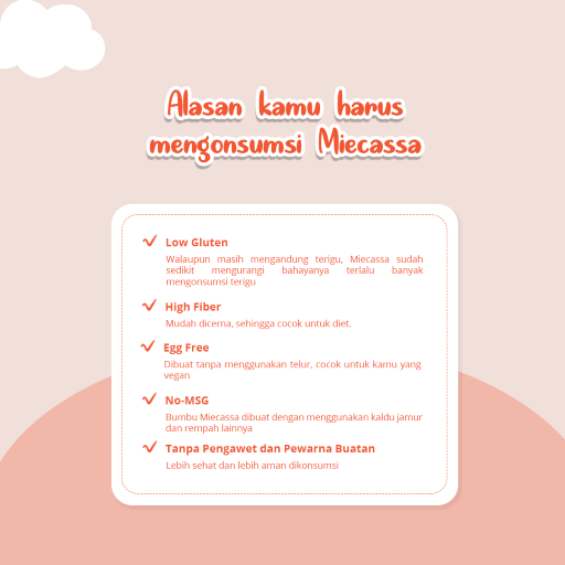 Masih ragu mengkonsumsi Miecassa? Coba dulu aja. Dan rasakan nikmatnya mie sehat ?