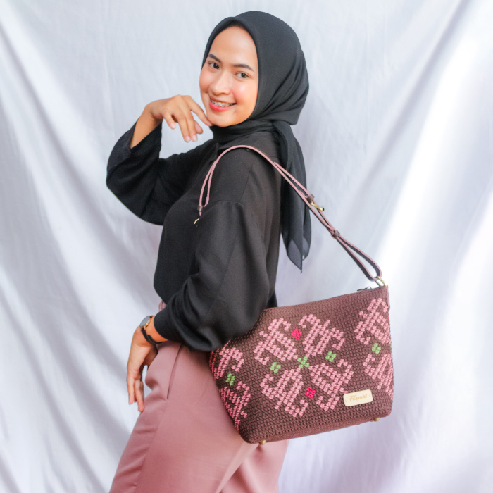 "Rumah Rajut Fayari" in Payakumbuh was established on January 1, 2018. It focuses on developing knitting and craft skills, with its main product being knitted bags using the technique of net knitting. Fayari has released 15 patterns and 42 models of bags in various sizes. They combine hand embroidery with knitting yarn instead of embroidery thread, and also incorporate motifs from Tenun Balai Panjang, a traditional woven fabric from Payakumbuh. Fayari empowers women aged 16 to 62 through knitting training programs. Their knitted products are environmentally friendly, with minimal waste. They have plans for export based on offers received over the past 2 years.
