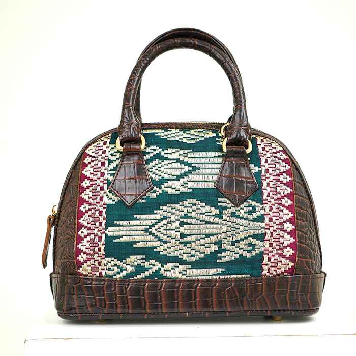 Woven bark from the bemban tree in West Kalimantan that is woven and shaped into a bag by the Dayak Iban. All parts of the bag are made from the webbing. It is then lined with lining inside and fitted with a long strap of genuine leather.