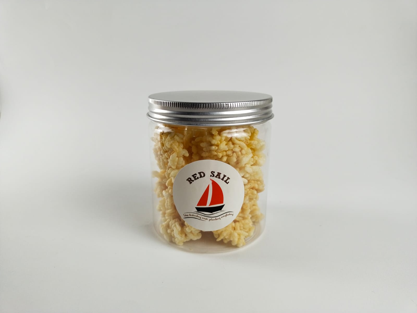 Rengginang Terasi Red Sail does not use artificial preservatives, artificial flavoring and artificial coloring. Fried using disposable cooking oil.