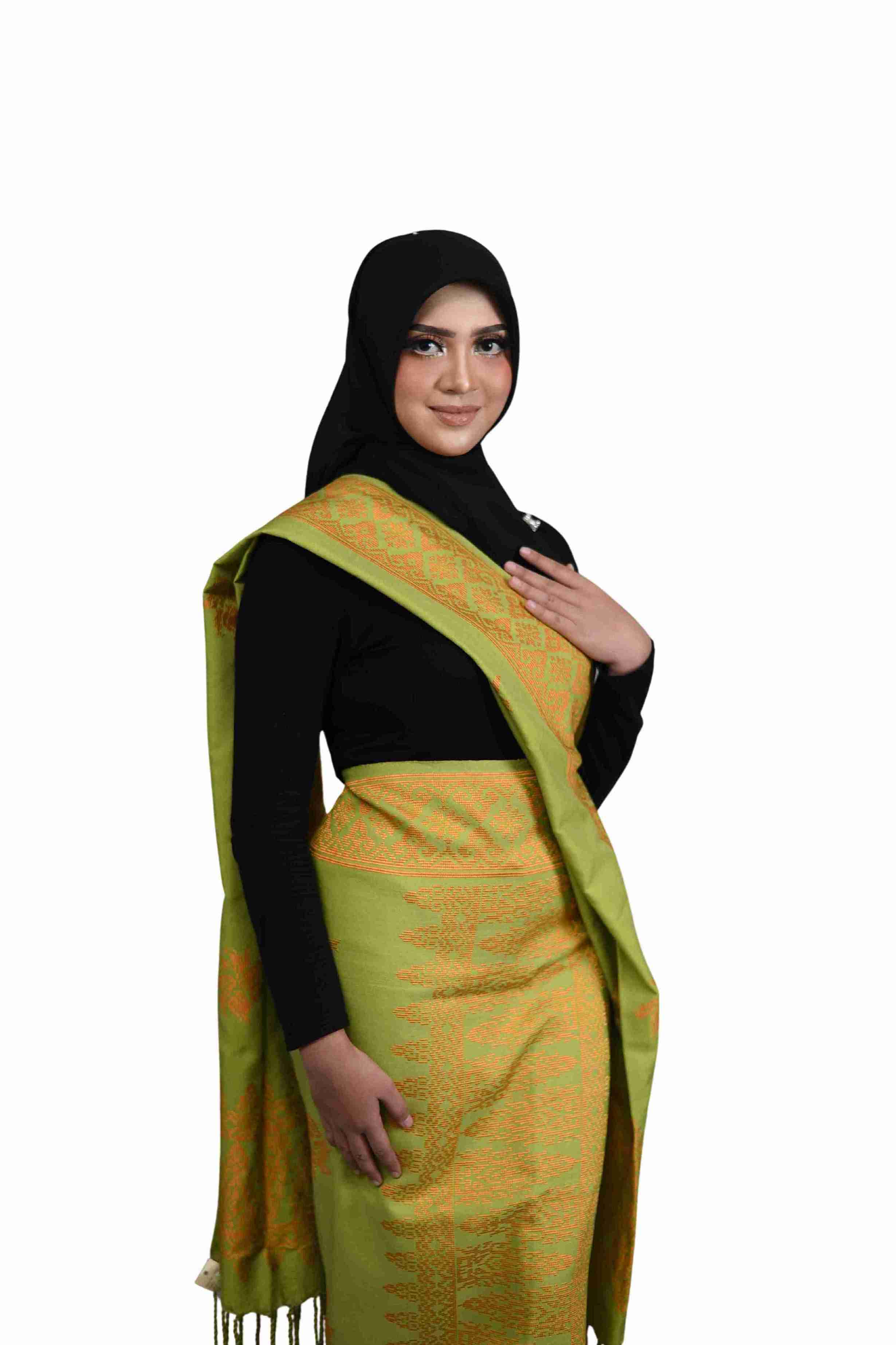 Pattern Meaning: Filosofi : Memakai tenun tajuk puteri, Adat tegak lembaga berdiri, Niat sampai murahlah rezeki, Tuah menjadi payung neegeri