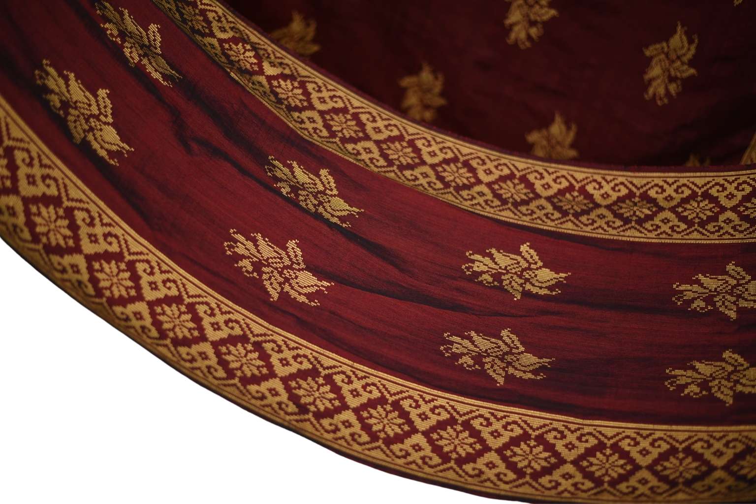 Pattern Meaning: Filosofi : Memakai tenun tajuk puteri, Adat tegak lembaga berdiri, Niat sampai murahlah rezeki, Tuah menjadi payung neegeri