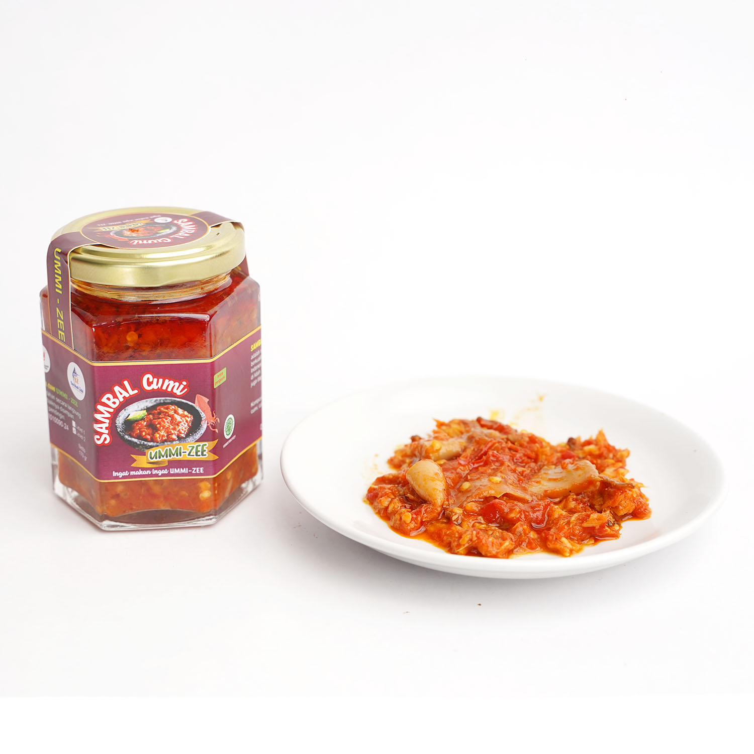 Sambal cumi Ummi-Zee Sambal cumi is processed with baby calamari quality salted eggs mixed with traditional Indonesian spices and herbs to produce a taste that fits on the tongue. It is suitable to accompany mealtime can also be cocol with other foods. At room temperature it can last for months so it is very safe to send both domestically and abroad. After opening it should be stored in the refrigerator because it doesn't use preservatives.