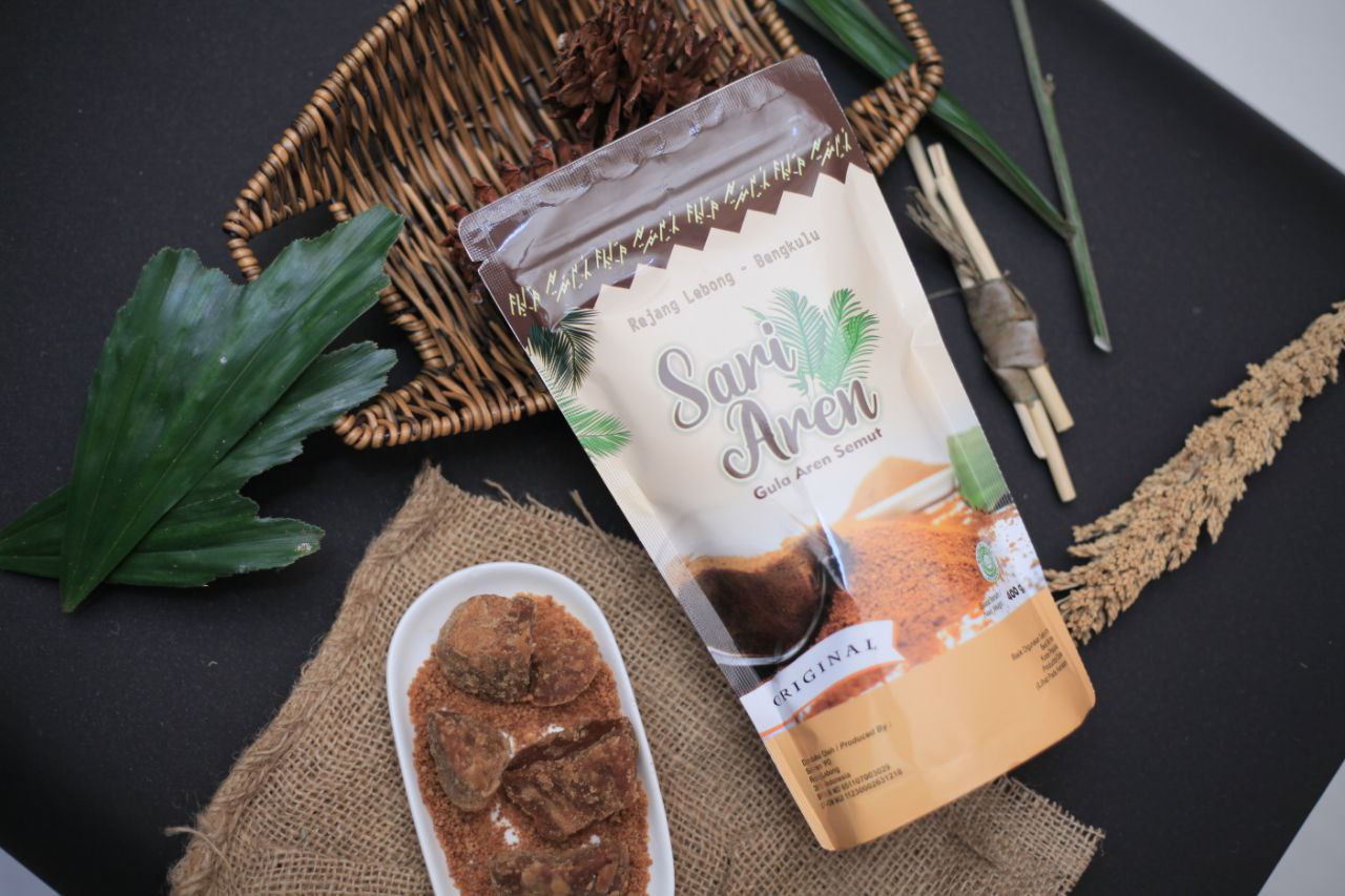 Sari Aren Palm Sugar is pure sugar made from palm sap which originates from Rejang Lebong Regency, Bengkulu Province. Sari Aren has processed palm sap hygienically and selected it to become a premium quality processed product "Sari Aren" Palm Sugar. Palm Sugar Sari Aren has various flavors, namely original, red ginger, and coffe palm sugar. Palm Sugar Sari Aren is processed hygienically with processing standards that have obtained BPOM distribution permits and is 100% organic without any chemicals. Palm Sugar Sari Aren can be used as a sweetener for drinks and food.