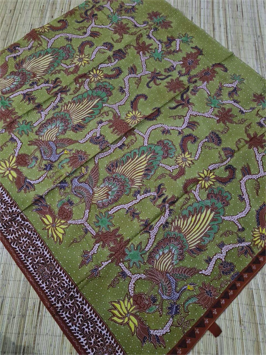 Pattern Meaning: Motif batik Daun Simpor memiliki ciri khas berupa pola daun yang lebar, berlekuk, dan sering kali simetris. Daun-daun tersebut biasanya digambarkan dengan detail dan memberikan kesan alami yang khas. Warna yang umum digunakan dalam motif ini adalah hijau untuk daunnya dan warna lain sebagai latar belakang atau sebagai warna tambahan untuk menghiasi motif tersebut. (The Daun Simpor batik motif is characterized by its distinctive wide, undulating, and often symmetrical leaf patterns. The leaves are typically depicted with intricate details, creating a unique natural impression. The common colors used in this motif are green for the leaves, with other colors serving as the background or additional accents to embellish the motif)