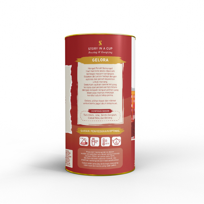 Warm and energetic our days are always filled with various challenges. Prepare yourself to face them with optimism and confidence to win. Brew this special concoction created from a blend of black tea with selected spices that are believed to be able to keep the body in top condition. Gelora, the right and delicious choice to help keep your body strong.