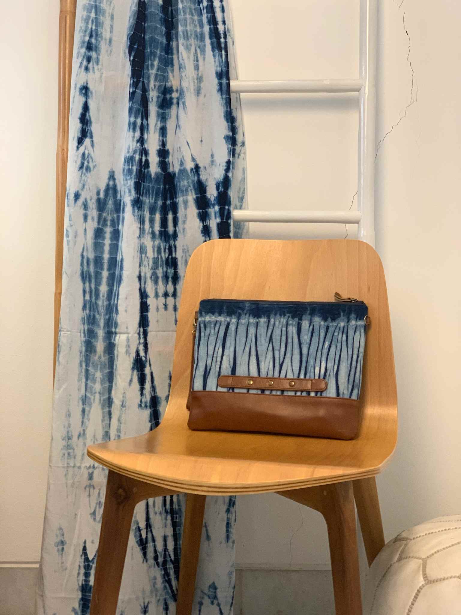 Canvas Natural Indigo Dyed kombinasi dengan Kulit Sapi Asli.