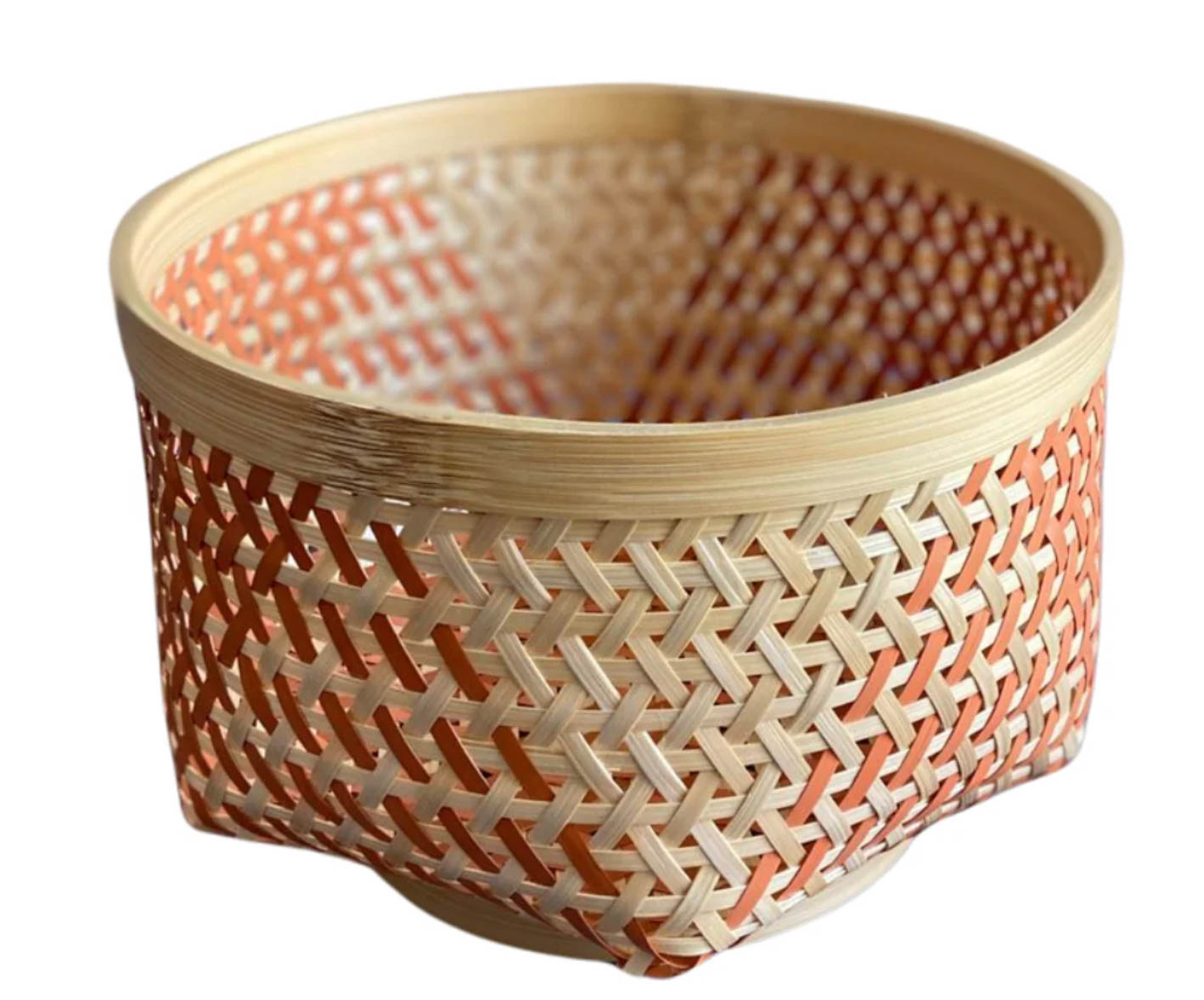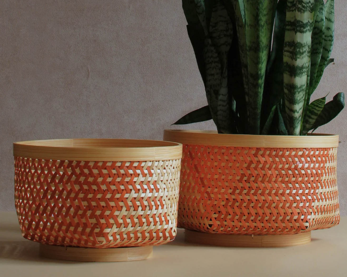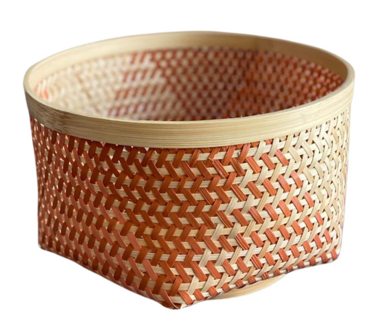 Terracotta-colored round basket, ideal for planters or storing various objects in your home.